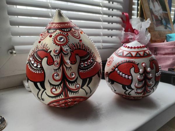 Так учебный проект превратился в актуальное поздравление. Расписанные вручную кони, олени и сказочные птицы на шарах и колокольчиках — это мостик между древним ремеслом и современным дизайнерским мышлением.