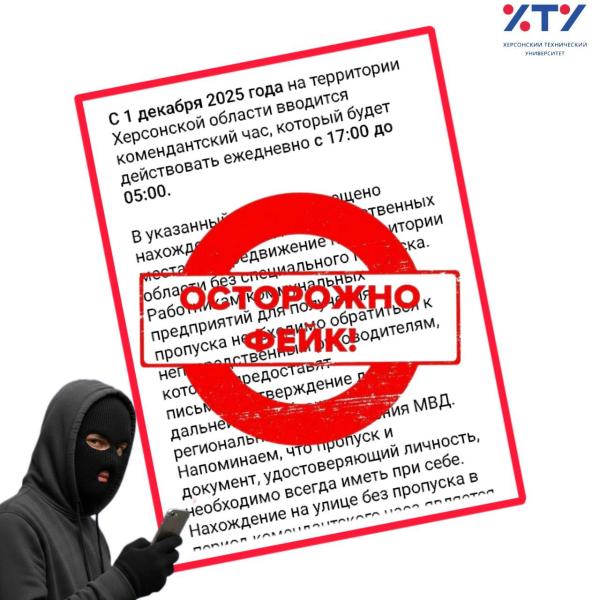 Уважаемые студенты! В мессенджерах и социальных сетях активно распространяется тревожное сообщение о введении с 1 декабря 2025 года строгого комендантского часа в Херсонской области с 17:00 до 05:00.