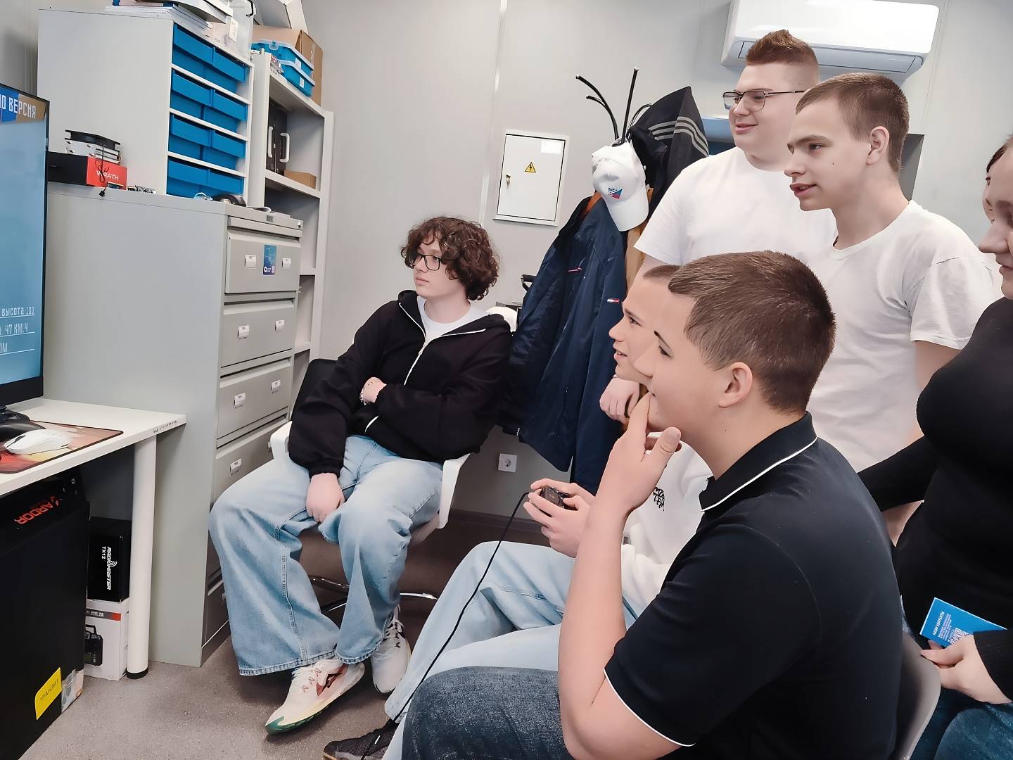 — другие взяли в руки джойстики и начали управлять мобильной платформой в симуляторе, пробуя себя в роли операторов.