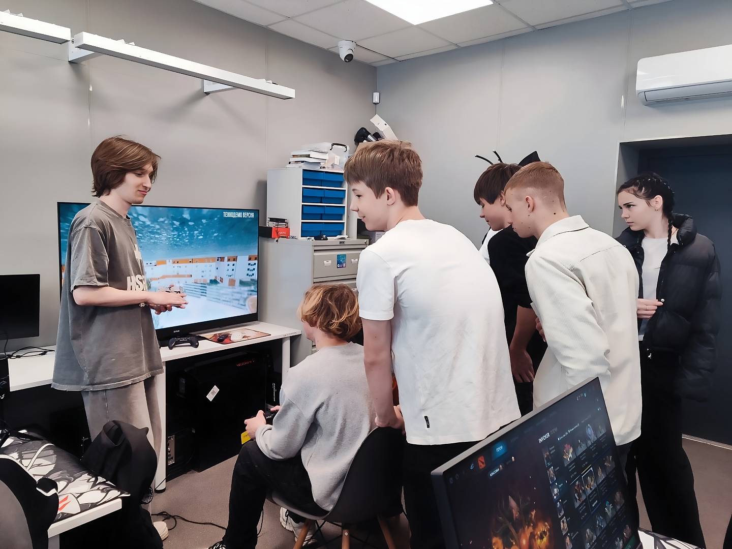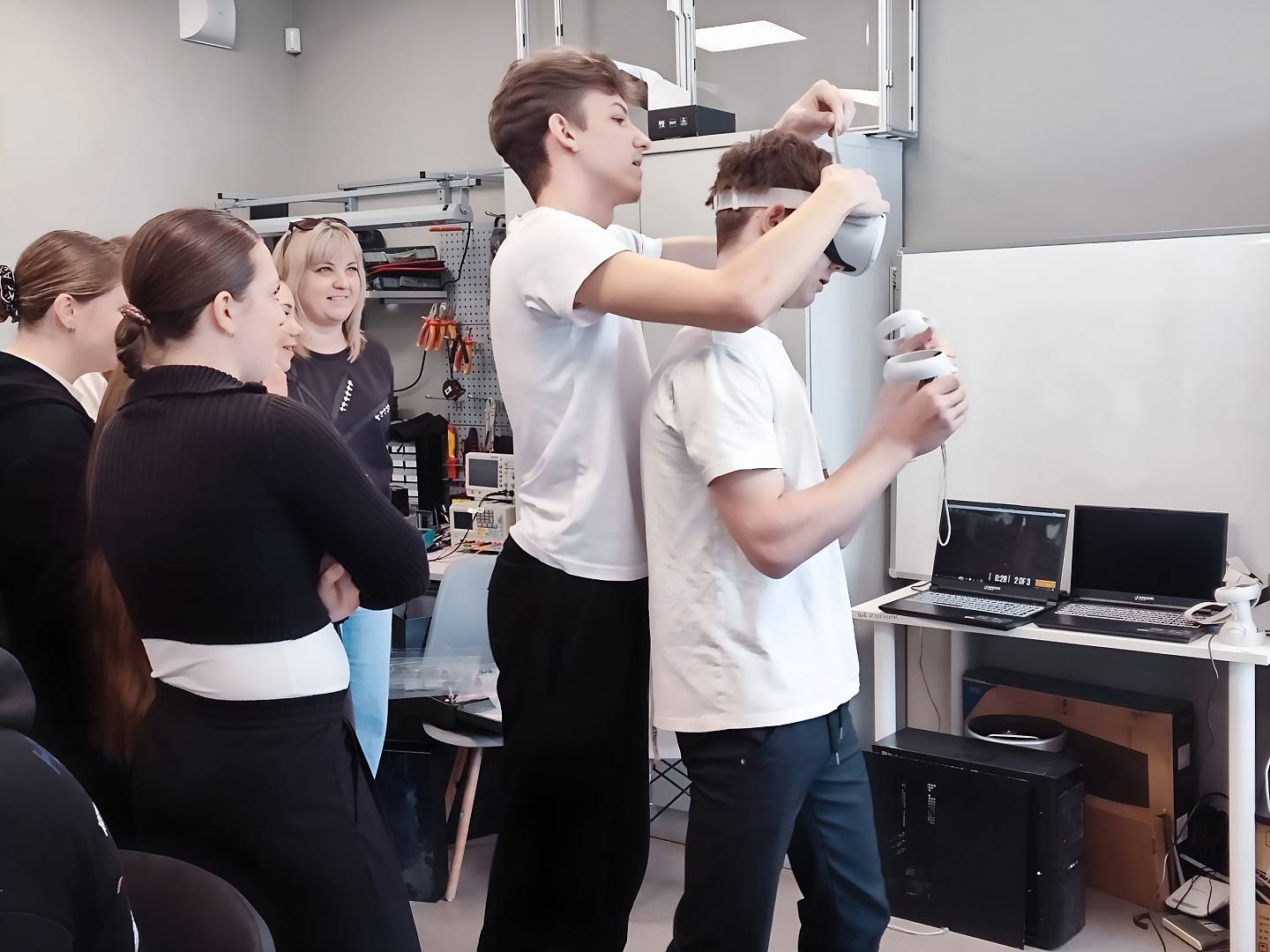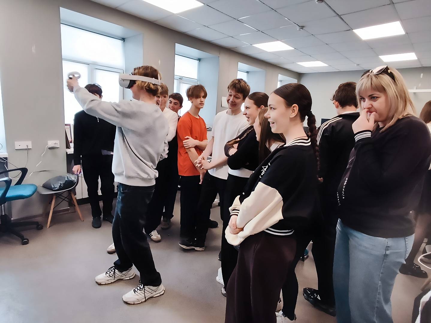 Школьников не оставили в роли наблюдателей. Их разделили на две группы, и каждая оказалась внутри процесса: — одни надели VR-гарнитуры и буквально «перешли» в другую реальность, где можно не просто смотреть, а взаимодействовать;