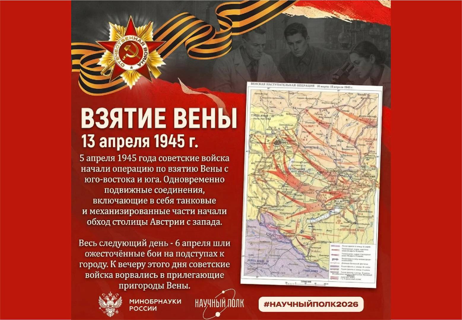 13 апреля 1945 года советские войска победоносно завершили Венскую наступательную операцию, освободив столицу Австрии от фашистских захватчиков. С 5 по 13 апреля шли тяжелые, ожесточённые бои за город, который противник превратил в неприступный оборонительный узел.