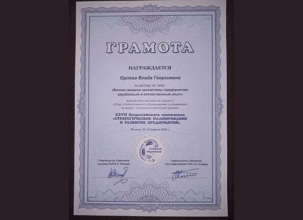 14 и 15 апреля 2026 года делегация факультета экономики и управления предприятием (ФЭУП) ХТУ приняла участие в XXVII Всероссийском симпозиуме «Стратегическое планирование и развитие предприятий».