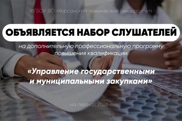 Открыт набор слушателей (на период 2026г.) на программу повышения квалификации «Управление государственными и муниципальными закупками»