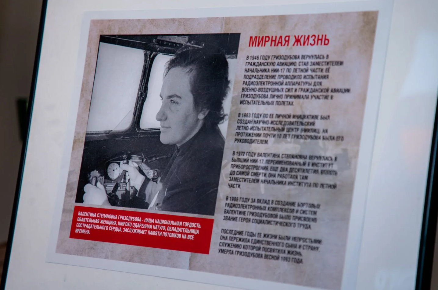 «Родина» зовёт: в ХТУ открылась выставка посвящённая выдающейся советской лётчице, Герою Советского Союза Валентине Степановне Гризодубовой