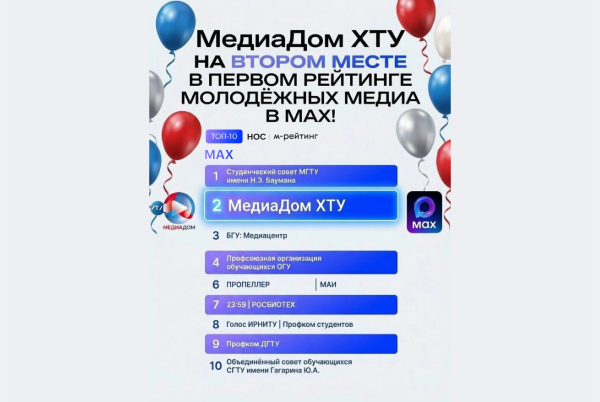 МедиаДом ХТУ занял почетное 2 место в самом первом рейтинге молодёжных медиа в МАХ! 🥳