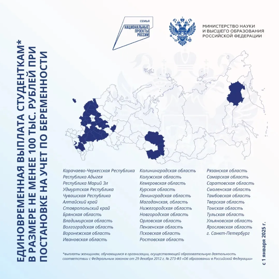 От 100 000 ₽ — при постановке на учет по беременности- Для кого: студентки вузов любых форм обучения (даже если вы взяли академический отпуск!).