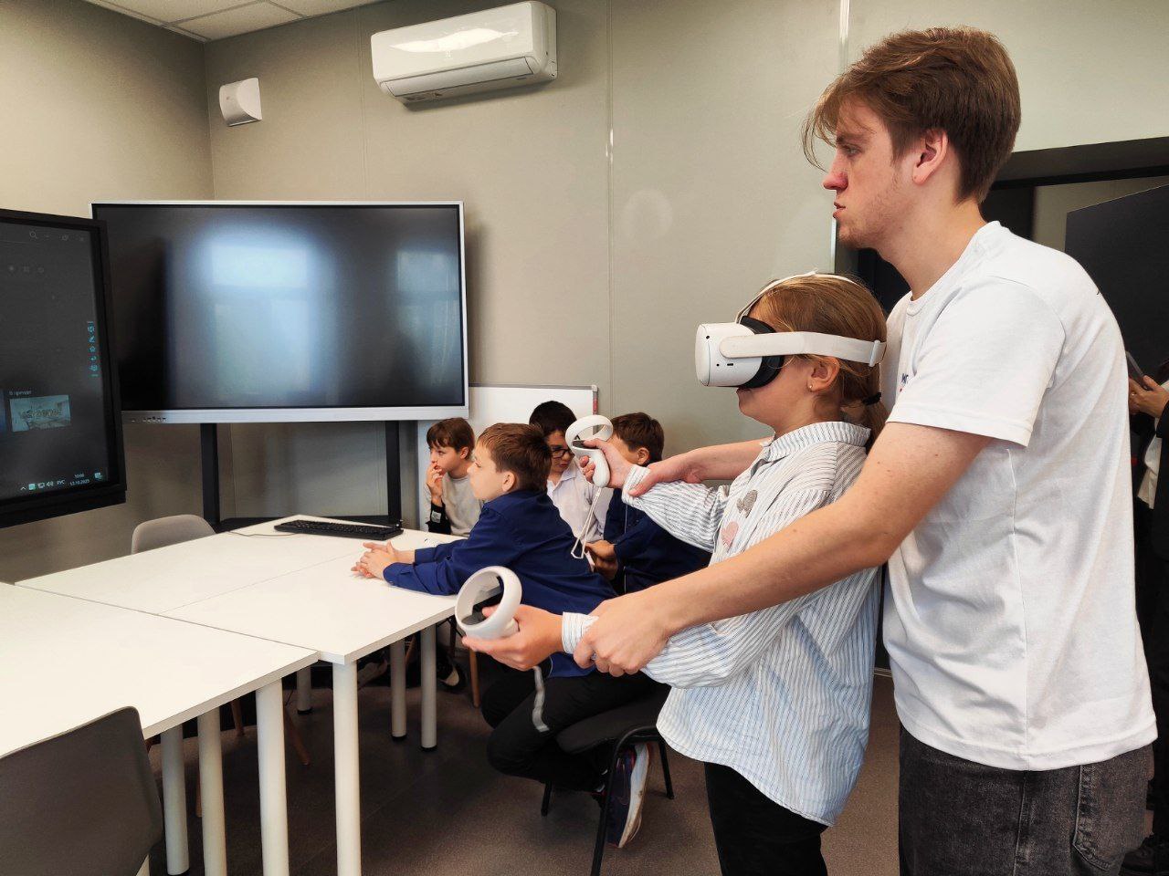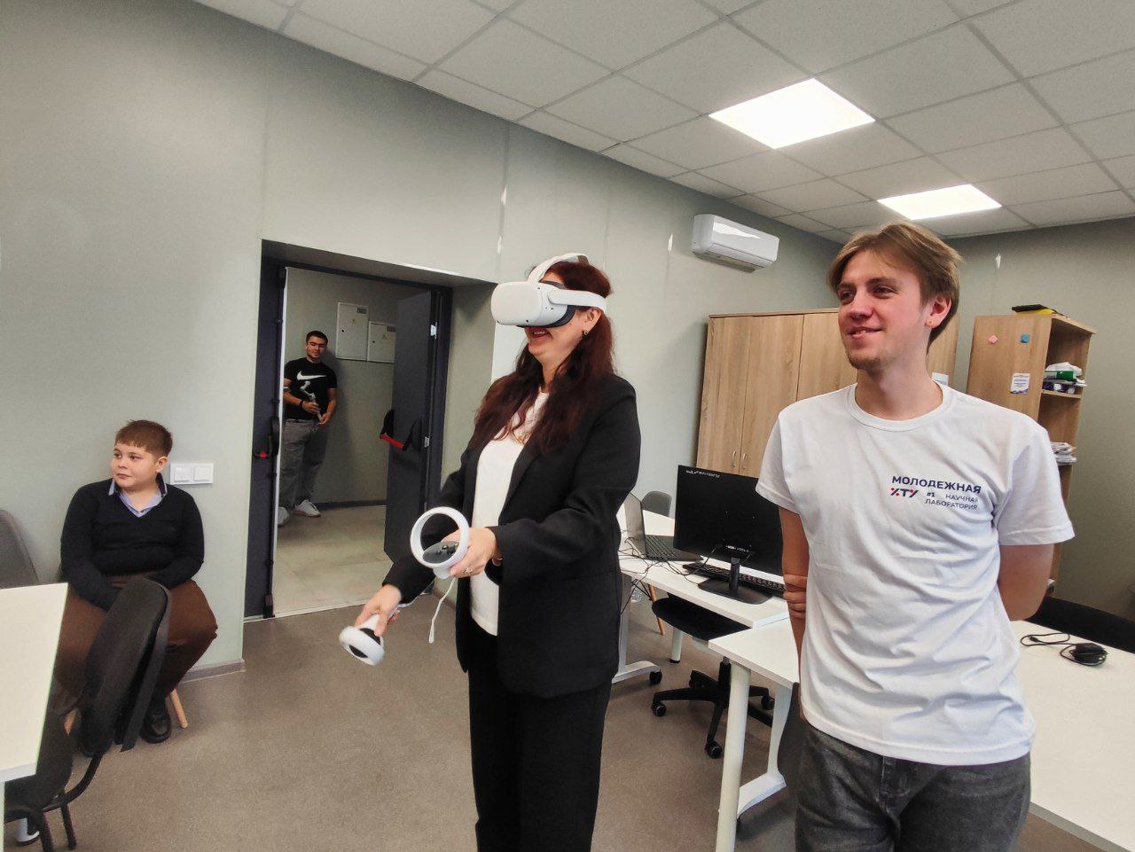❗Занятие оказалось настолько захватывающим, что даже преподаватель решила попробовать VR-технологии и погрузилась в виртуальный мир вместе с детьми.
