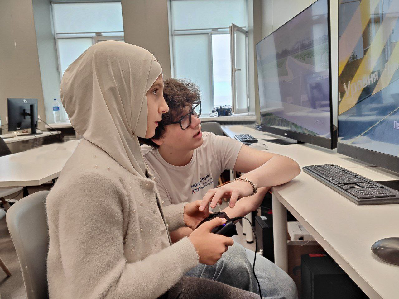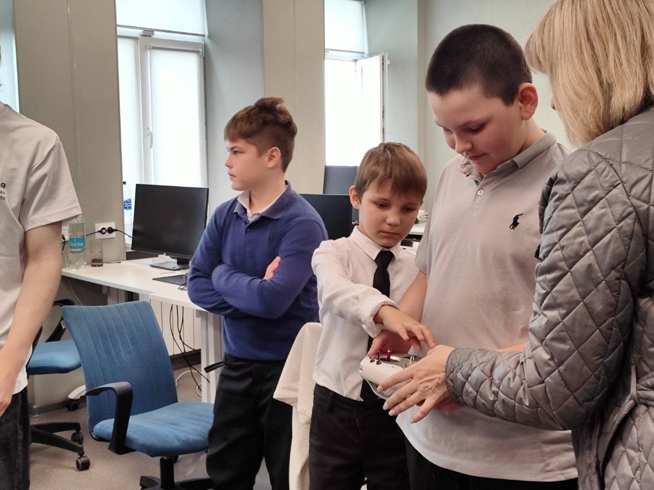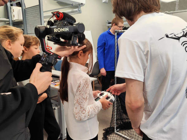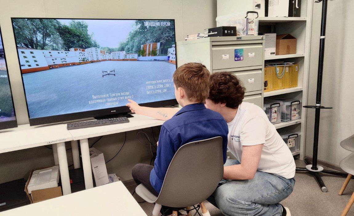 Школьники с восторгом погружались в виртуальную реальность и с увлечением управляли учебными мобильными платформами. Управление с джойстика понравилось многим, а полет мобильных платформ вживую вызвал разные эмоции: кому-то было непросто, а кто-то справлялся с легкостью.