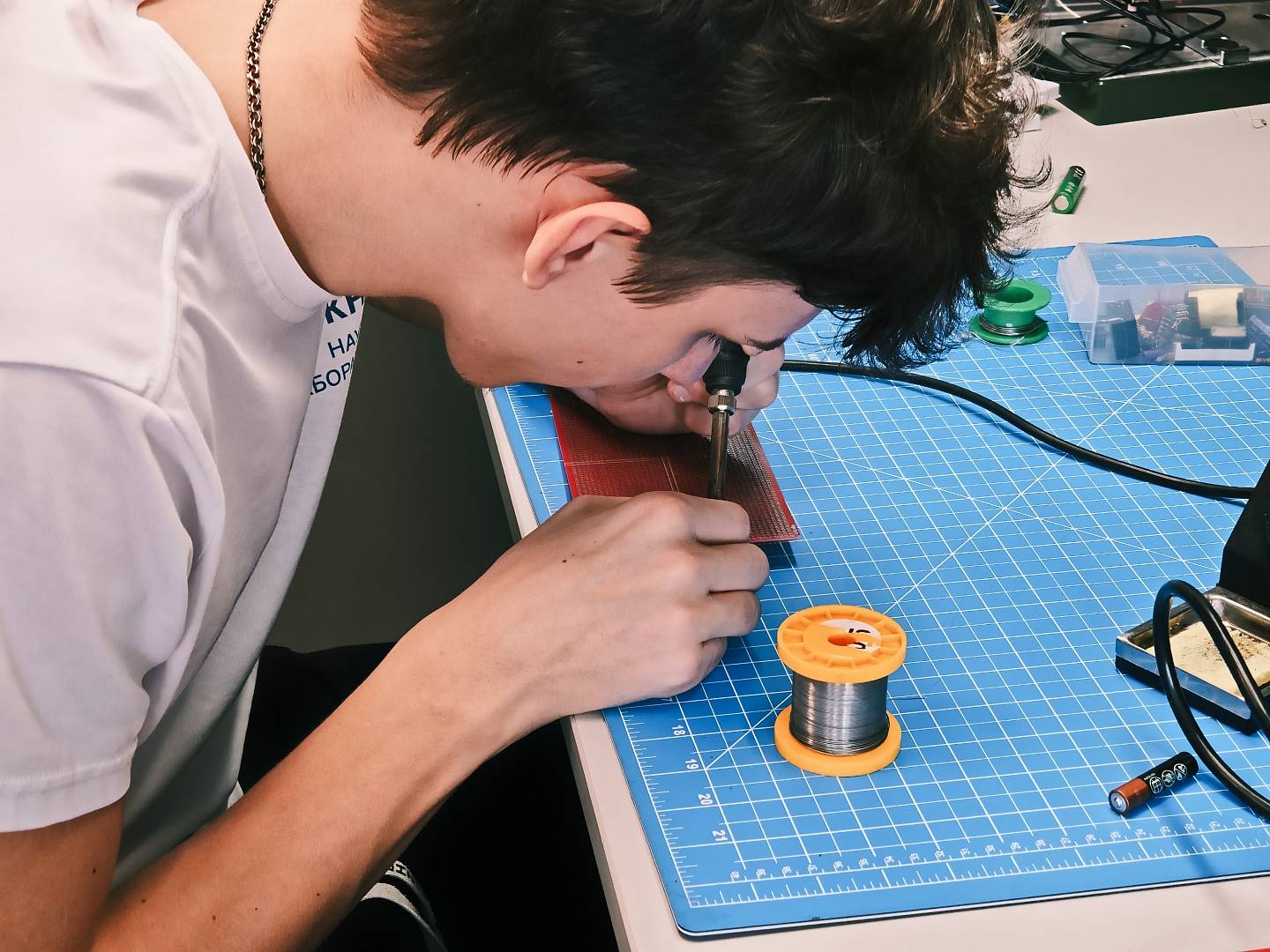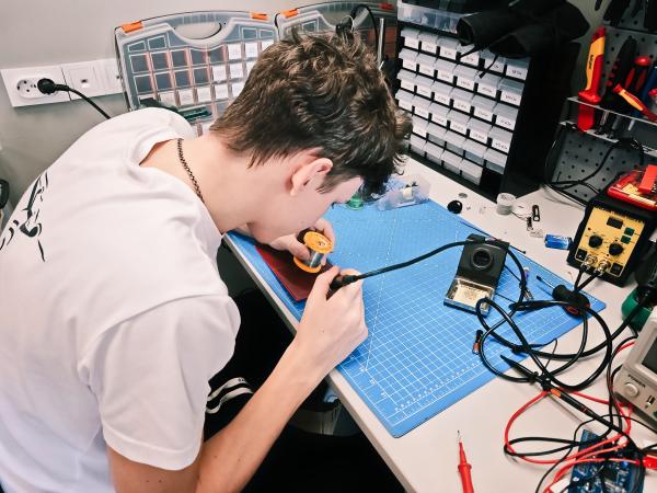 Лаборанты-исследователи не только изучают новые технологии и углубляют свои знания, но и переходят к практической реализации собственных идей. В рамках работы над модулем беспроводной зарядки устройств они осваивают навыки пайки, собирают и дорабатывают электронные компоненты, чтобы в дальнейшем протестировать и улучшить прототип.