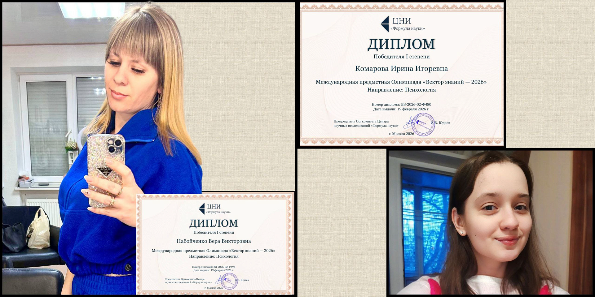 Команда кафедры психологии и социологии блестяще выступила на Международной предметной олимпиаде «Вектор знаний — 2026». Наши студентки и преподаватель кафедры продемонстрировали феноменальный результат — в копилке достижений только первые места!