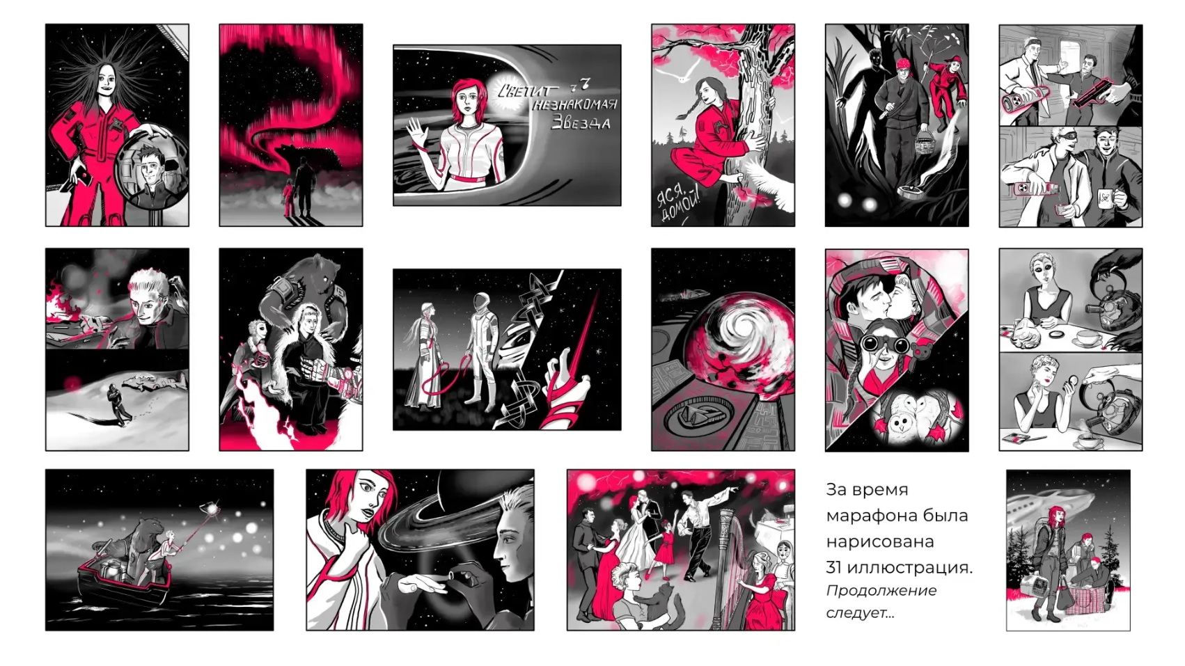 Условия марафона требовали железной дисциплины: на протяжении месяца участники ежедневно получали одно ключевое слово, по которому нужно было создать скетч. Обязательное условие — выдержать единую стилистику всех работ. Пропуск хотя бы одного дня означал автоматическое выбывание.