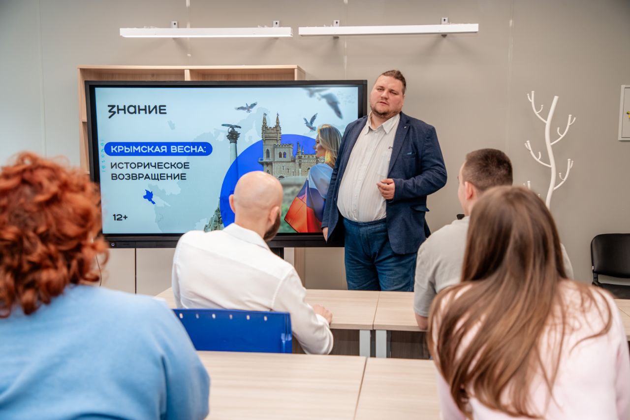 В нашем университете прошла кинолекция «Крымская весна: историческое возвращение». Перед студентами и сотрудниками выступил лектор Российского общества «Знание» Сергей Юрьевич Овчарь.