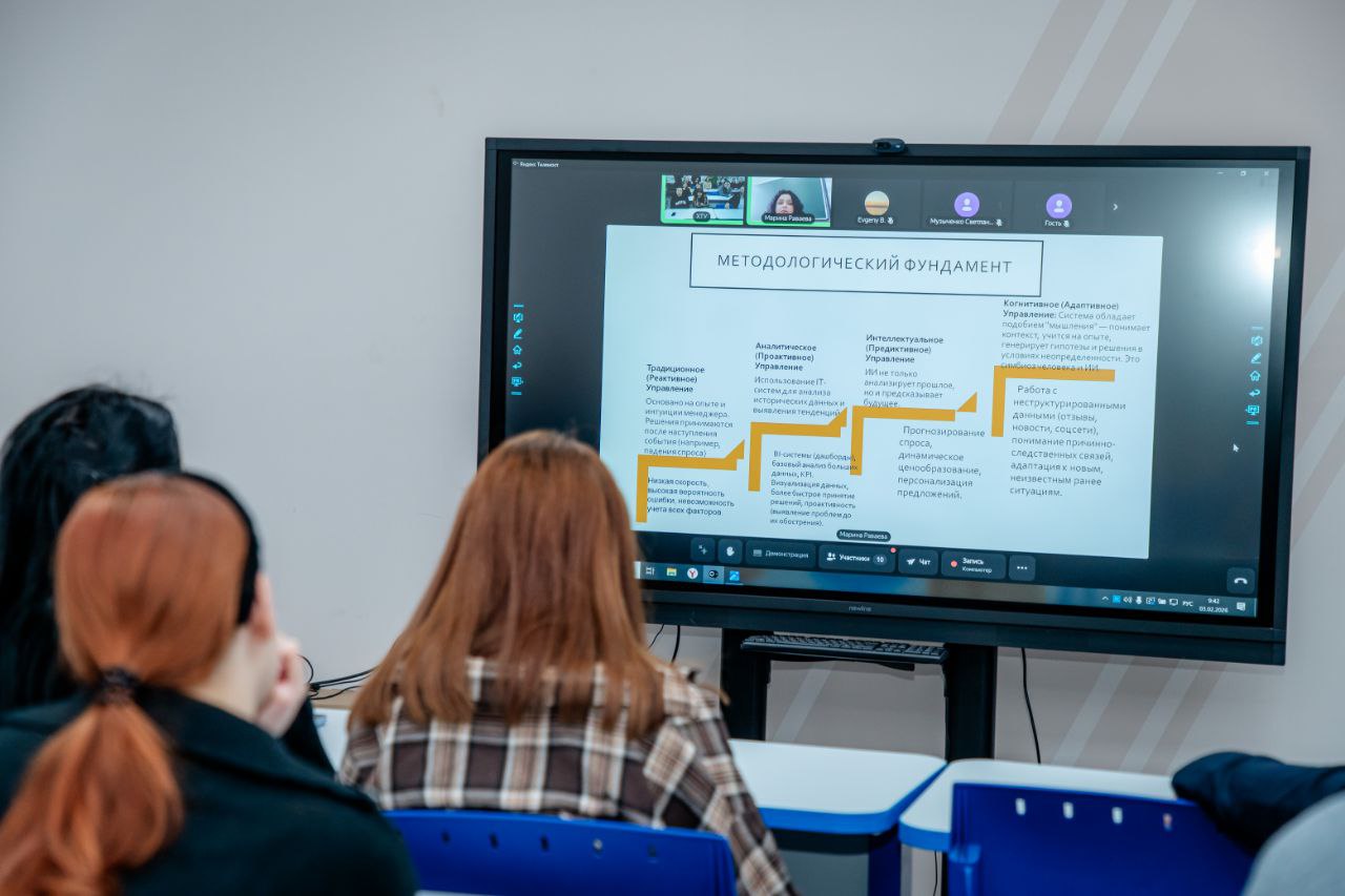 Утро началось с масштабного экспертного обсуждения в рамках круглого стола. В гибридном формате (очно и через телемост) эксперты и студенты разобрали, как цифровизация меняет правила игры:
